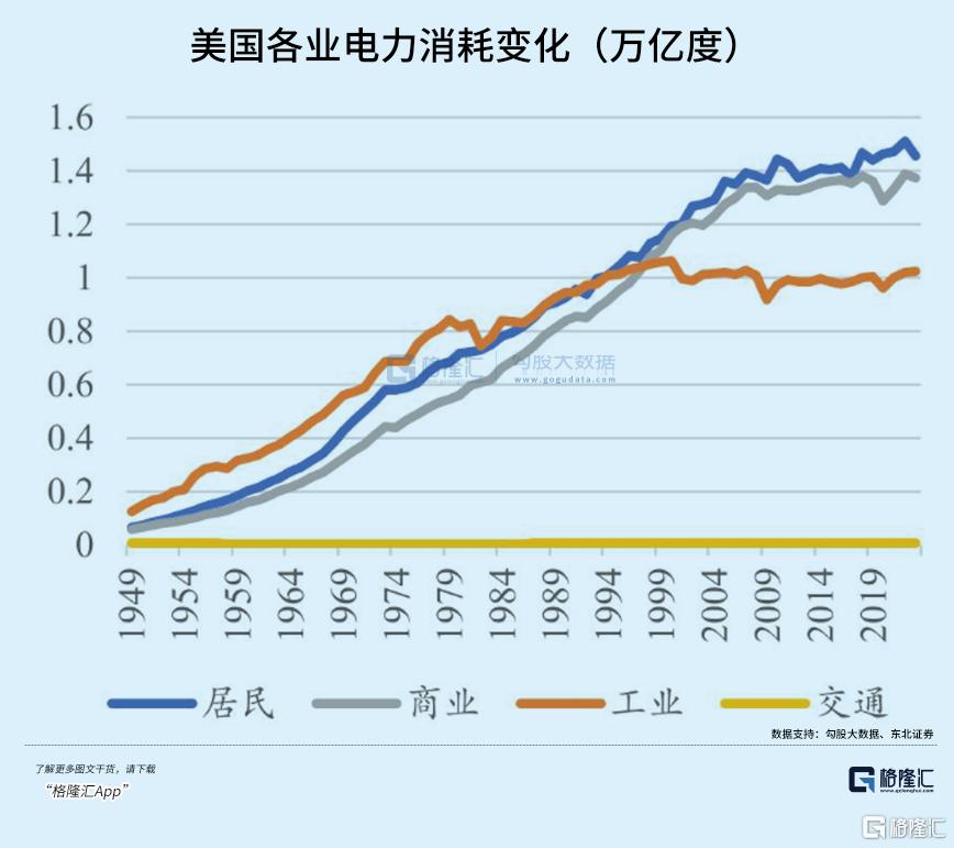 作为对比,中国 2023 年总发电量约 94181 亿度,工业用电量 63847 亿度,占比约 67.8%。