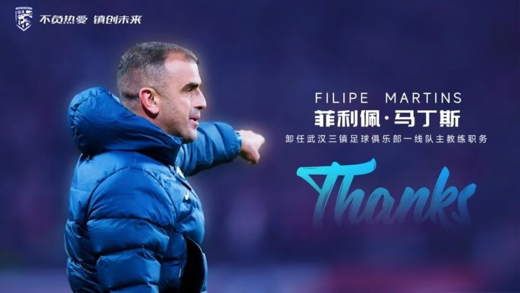 武汉三镇足球俱乐部感谢马丁斯及其教练团队在执教期间为球队付出的努力,祝福他在今后的生活与工作中一切顺利。