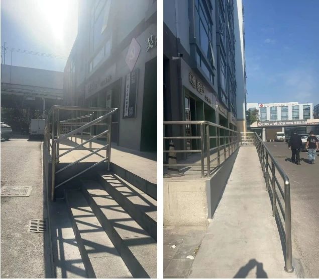 此前,有上海市宝山区居民反映,吴淞街道智慧七立方园区社区食堂门前的台阶不仅高,还比较陡,给日常就餐带来诸多不便。特别是腿脚不便的老年人和推婴儿车的家长,面对这段楼梯显得尤为吃力。若遇到下雨天,还存在滑倒的风险,安全隐患不容忽视。