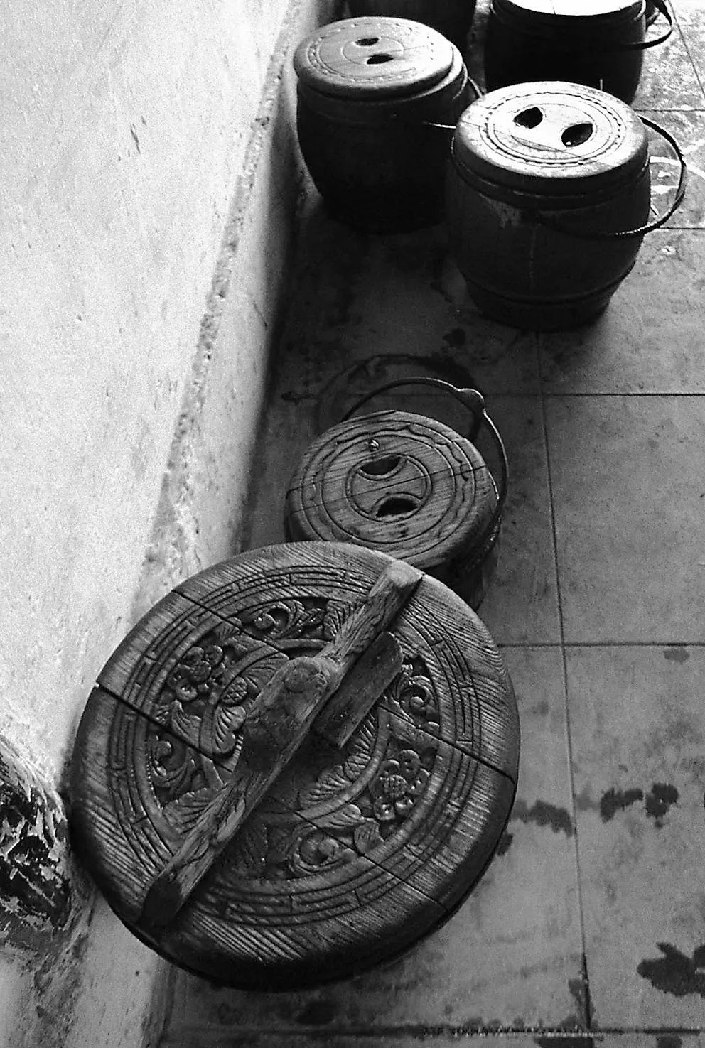 从近年发现的《南浔研究》(当时小学生在教师指导下形成的社会调查资料)原稿得知,20世纪30年代镇上已有几处公共厕所,但到50年代初每家每户还都使用马桶,倒马桶便成了家庭主妇或女佣的日常家务。不过,家里的女人不必亲自倒马桶,至多只要将马桶拎到家门口,因为每家的马桶早已由惜粪如金的农户承包了。每天清晨,都会由固定的农妇或她家的大女孩将马桶拎去,倒入她家的粪桶后再洗刷干净,送回原处。如果主人不介意,也可不必将马桶拎出,由农妇直接到房间取。但送回时都送在门口,还将盖子斜放,开着一半,一则告诉主人马桶已倒过,一则便于风吹干洗刷时弄湿的马桶沿,免得主人使用时不舒服。到80年代我第一次在广东的餐馆用餐,见友人将茶壶盖打开一半斜放在壶上,得知这是提醒服务员添水,不禁想起那时家门口斜放着盖子的马桶,差一点笑出声来。