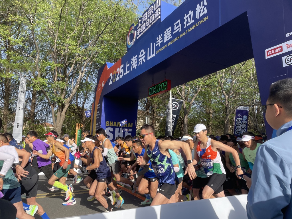 4月13日上午7:30,2025上海佘山半程马拉松鸣枪起跑。 本文图均为徐祯曜 摄