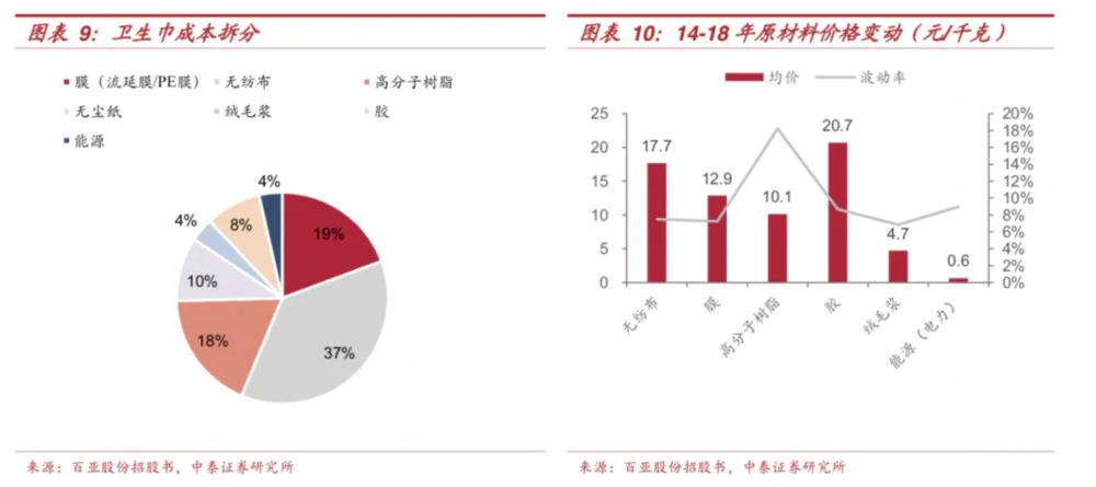 卫生巾成本拆分。(图 / 中泰证券)