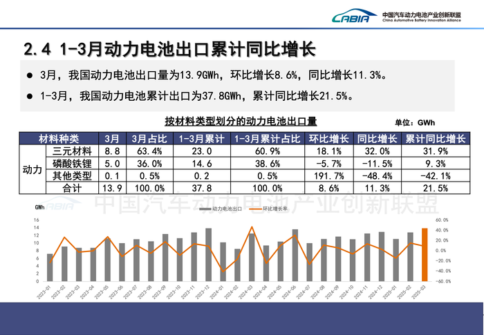 今年一季度,国内动力电池累计装车及出口均创下历史同期新高。
