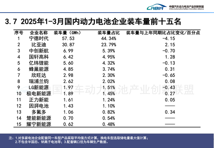 整体来看,一季度,宁德时代和比亚迪分列国内动力电池装车量前两位。