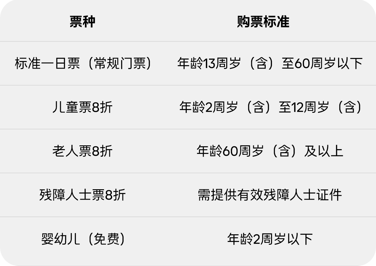 此外,上海乐高乐园还为老年人、残障人士提供优惠价格,具体适用标准如下: