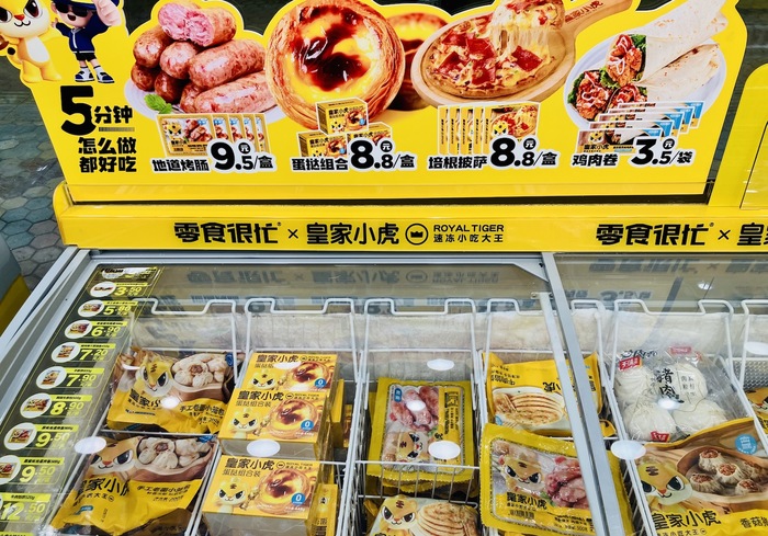 一位华南的赵一鸣加盟商告诉界面新闻,这些具有超高性价比的产品能够为店铺带来很好的客流。界面新闻在3月底走访华南一家零食很忙时看到,该品牌与皇家小虎联名的双品牌速冻类产品已经上架,其中烤肠的价格为9.5元,非常具有吸引力。