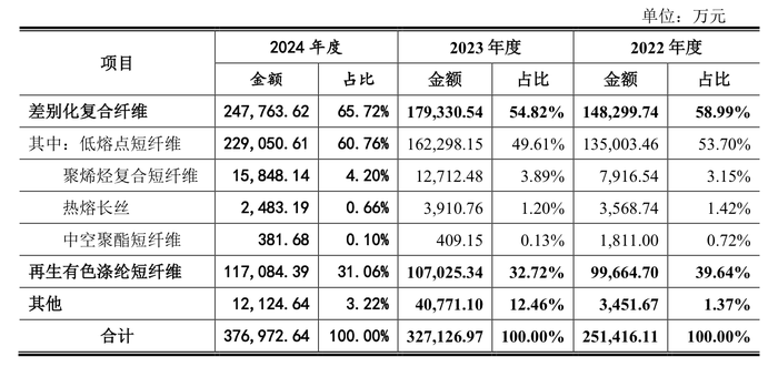 天富龙近年来保持高速成长态势,2022年至2024年年销量分别为37.01万吨、48.26万吨、54.86万吨,根据中国化学纤维工业协会统计数据,公司在汽车内饰用有色涤纶短纤维和低熔点短纤维领域,连续三年蝉联国内市场销量第一。