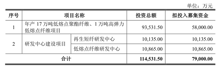 此次天富龙计划募资7.9亿元,拟投入到“年产17万吨低熔点聚酯纤维、1万吨高弹力低熔点纤维项目”(5.8亿元),和“研发中心建设项目”(2.1亿元)。目前公司已完成项目备案及环评程序,符合国家产业政策的相关规定。