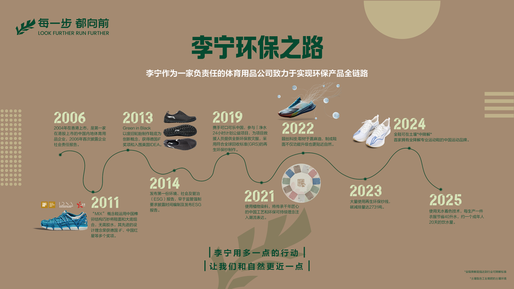 从早期点状的探索创新尝试,到如今系统化、全链路的深度实践,李宁在绿色创新之路上不断自我突破。