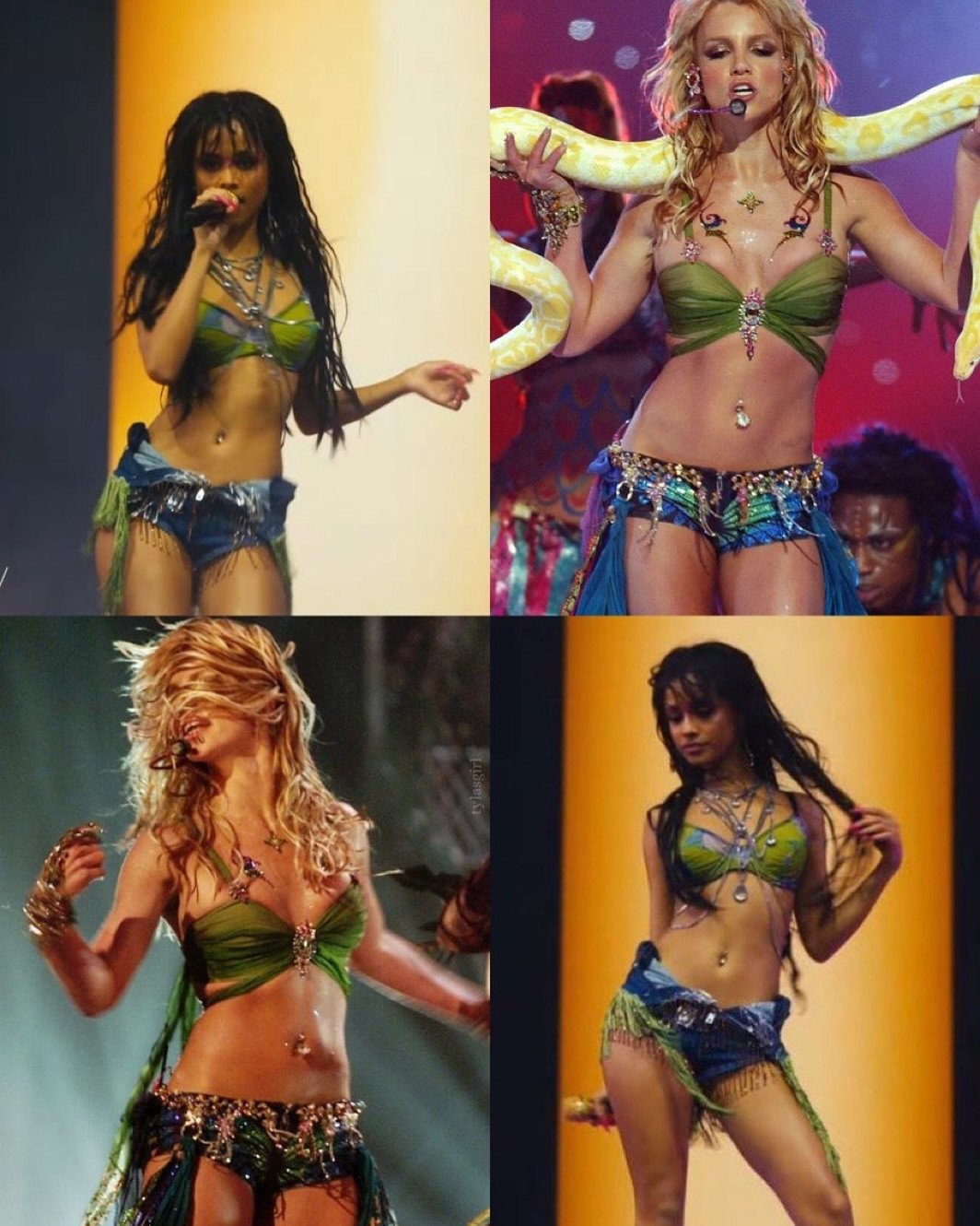 这一表演已经成为流行文化史上最受关注的造型之一,直到今天仍然是万圣节的顶级服装。所以,我们不会说谎,我们认为这也是受到布兰妮的启发。
