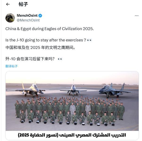 其实最早有关中国空军战斗机已经抵达埃及的消息,来自埃及空军。埃及国防部发布了中国歼 -10C 与驻扎在该国瓦迪阿布里什基地米格 -29M/M2 战机的合影照片,这也让最近外界热议的一个话题有了结论——中国究竟会派出什么战斗机参加这次演习?此前甚至有外媒大胆猜测,中国可能派出歼 -20 隐形战斗机前往埃及 ……