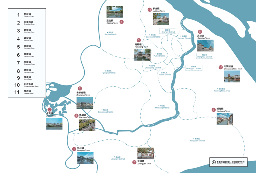 上海历史文化名镇(高价值历史文化资源较聚集的古镇)分布示意图。来源:《文物视角中的江南:上海古镇》