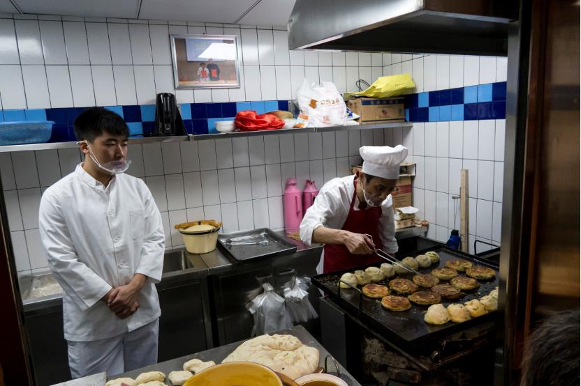 阿大告诉记者,自 4 月 21 日试营业开始,他天天都过来,清晨五点多起来的,六点左右到店,开始做准备工作,把面团和原材料都弄好,先试做两锅,后面就交接给店里的年轻人了。" 不来我不放心,不好的地方让他们改正,好的地方继续做下去。"