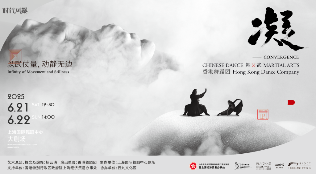 6月21日及22日,上海国际舞蹈中心剧场将举行两项当代舞表演:由西九协办、香港舞蹈团演出、舞团艺术总监杨云涛概念及编舞的舞✕武剧场《凝》,以及由西九委约及制作、与上海国际舞蹈中心剧场合办、香港编舞家盘彦燊所创作的《鸣》(独舞版)。