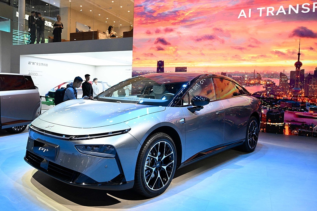 2025年4月23日,上海国家会展中心,2025上海车展,小鹏P7+超长续航旗舰版本展出。视觉中国 图