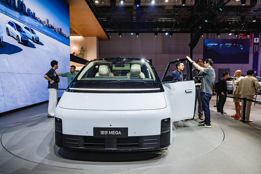 2025年4月23日,上海,第二十一届上海国际汽车工业展览会将于2025年4月23日至5月2日在国家会展中心举行。理想汽车发布了理想MEGA家族新成员——理想MEGA Home家庭特别版,以及升级版的理想MEGA Ultra和理想L6智能焕新版。视觉中国 图