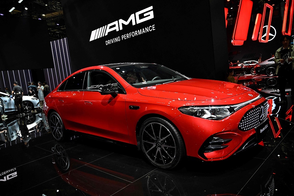 2025年4月24日,上海车展持续举行,梅赛德斯-奔驰电动CLA300 L。视觉中国 图
