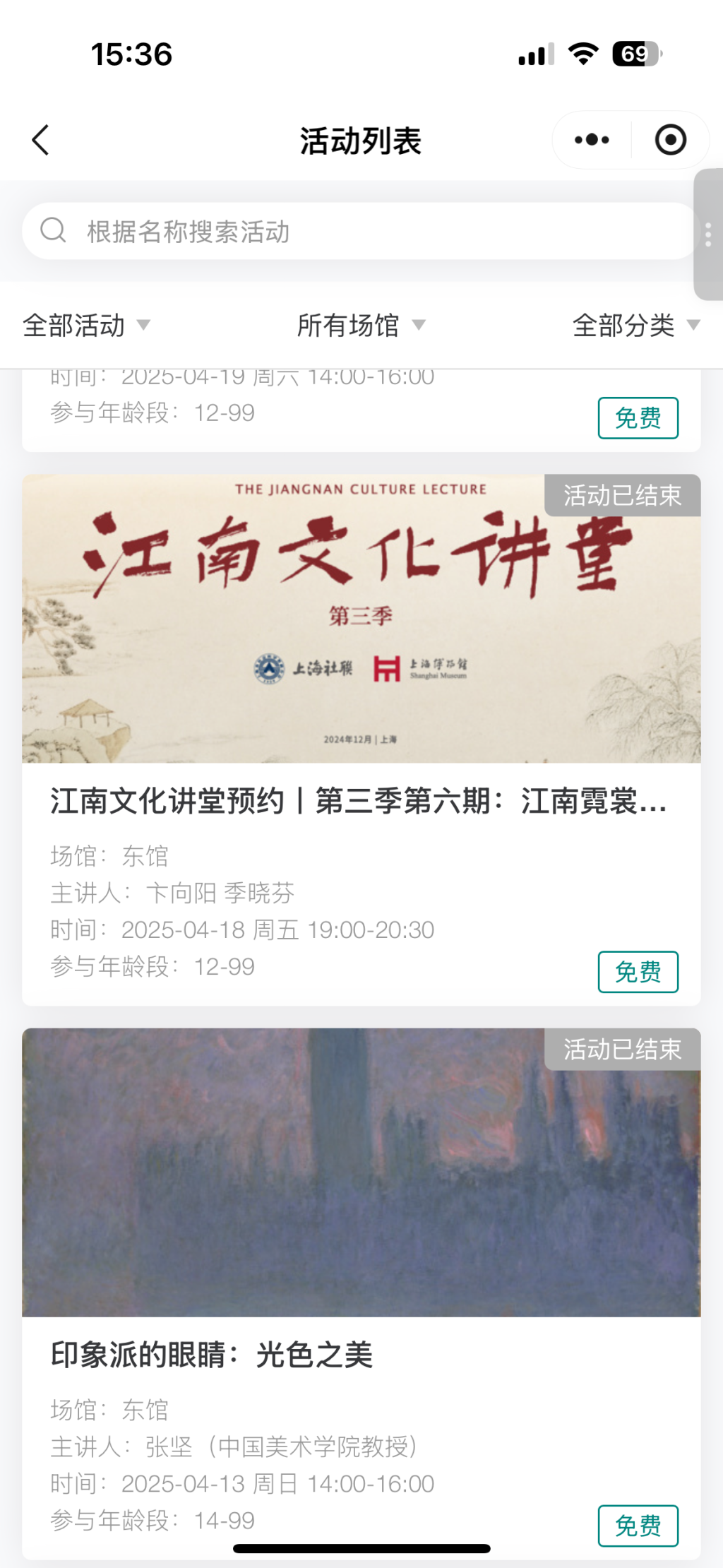 工作坊信息。 上海博物馆小程序截图