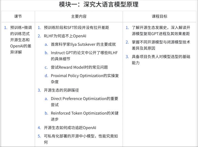 张睿文进一步解释,从课表来看,课程内容主要围绕着大模型的底层能力," 这等于是,你的应用场景只是做运营,但你居然要去学数学。这不是一招半式能练成的,工程师们也经历过很长时间的专业训练 "。
