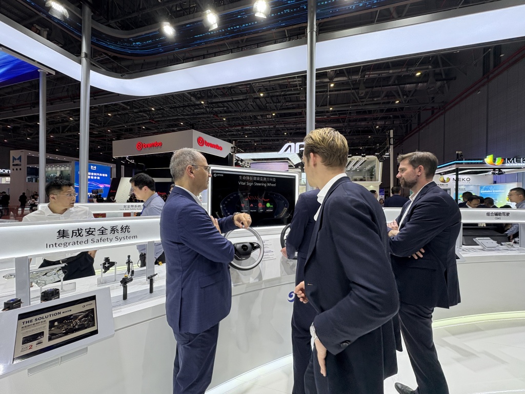 在均胜电子的展台上,与辅助驾驶安全相关的展品占牢牢据了C位。相关负责人介绍,作为全球第二大汽车安全供应商的均胜电子,乐于看到辅助驾驶安全受到全社会关注。公司展出的驾驶员监测系统与集成离手检测功能的智能方向盘,可在汽车启用组合辅助驾驶功能时实时监测驾驶员状态。一旦检测到驾驶员出现如双手脱离方向盘等分心驾驶行为,系统会依据车辆的安全策略及时提供分级预警或多元化提醒措施,有效降低辅助驾驶过程中的安全隐患。