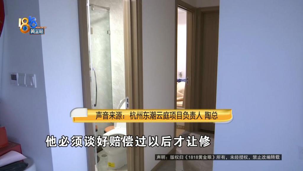 杭州东潮云庭小区 房修人员:原因我就不展开说了,反正我会去修。我很简单的,因为所有业主家都修完了,只剩他家了。他同意修,马上可以安排给他修,就这么说。
