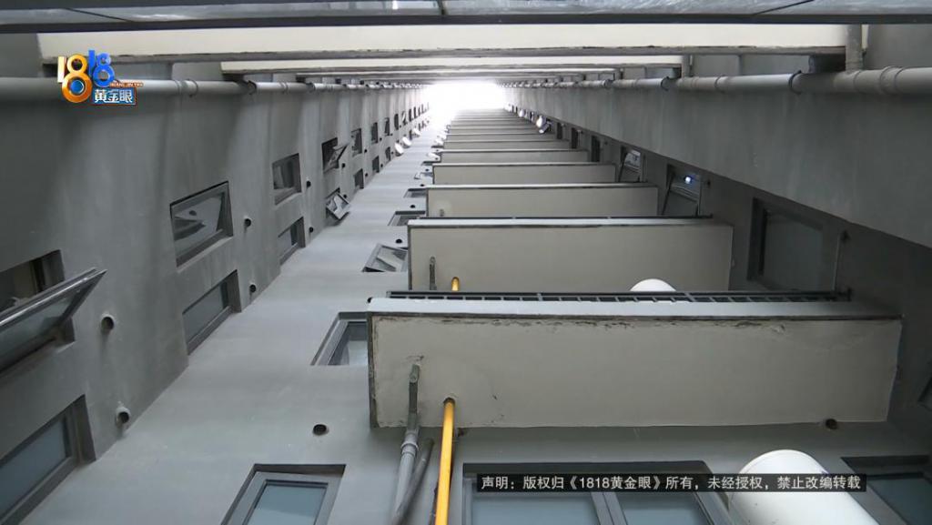 记者看了一下,卧室的窗户下面是设备阳台,装了空气能和空调外机天井上下是贯通的。