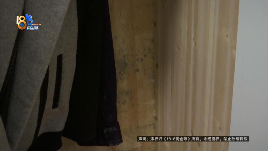 张师傅:现在漏水,完全底上就是全部出来了,加深了。当时柜子里面还没怎么注意的,今年过来一看,柜子里面全部发霉了,衣服全部发霉了。一直我窗户敞开通风的,因为这变天嘛,把窗户关起来了。