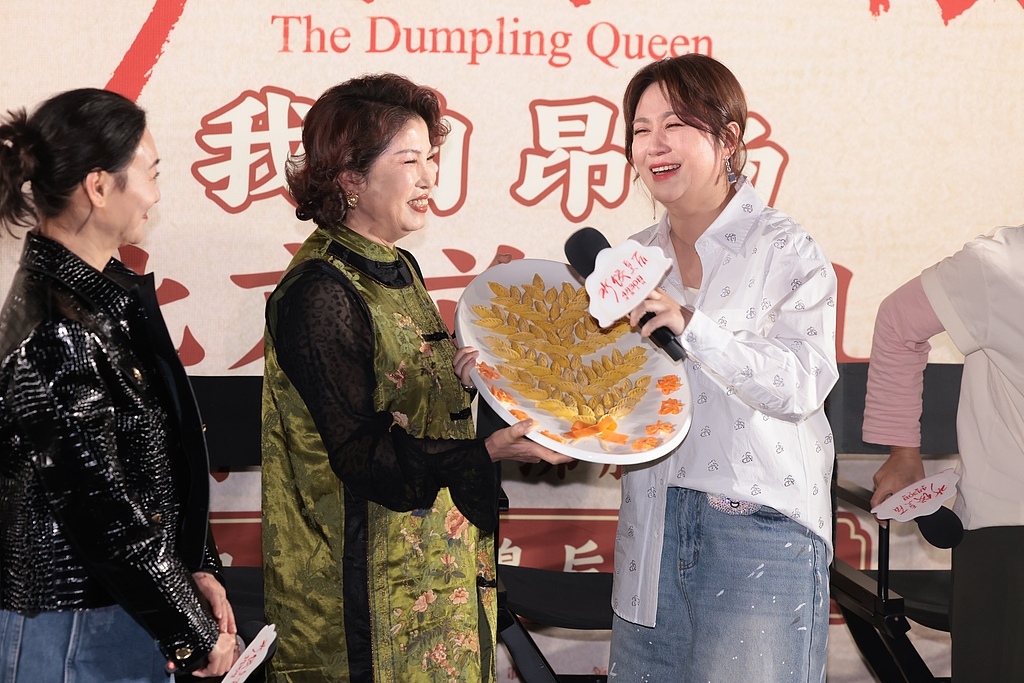 马丽的妈妈也在映后惊喜亮相,堪称首映礼上最为动人的一幕。她为全体主创送上了一盘亲手包好的猪肉酸菜馅饺子,还特意摆盘成“大麦”的形状寓意“票房大卖”。