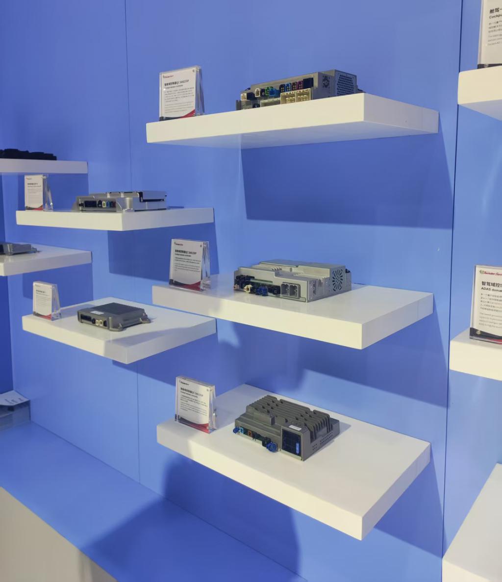 (展会上的智能座舱域控制器产品 财联社记者拍摄)
