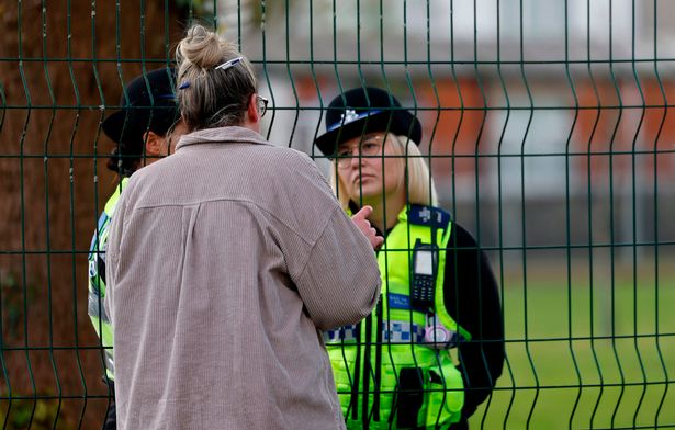 事发后,学校被封锁,家长们聚集在学校门口(图片:约翰·迈尔斯)