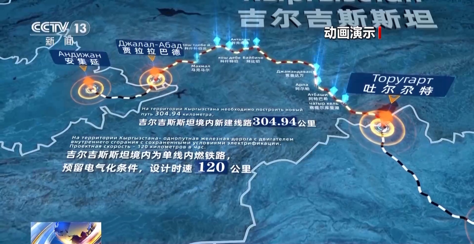 中吉乌铁路起自中国新疆喀什,经吐尔尕特山口进入吉尔吉斯斯坦,再向西经吉尔吉斯斯坦边境城市贾拉拉巴德,终至乌兹别克斯坦东部城市安集延。铁路设计时速120公里,共设吐尔尕特口岸站、贾拉拉巴德口岸站等20座车站。