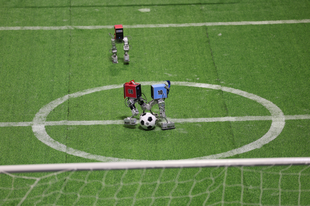比如,在机器人足球比赛中,几支由机器人组成的队伍在绿茵场上激烈对抗。它们灵活地穿梭、精准地传球和射门,动作流畅自然,仿佛一群真正的足球运动员。为了最大限度地减少人为因素的干扰,主办方还模拟了真实足球比赛的诸多场景,比如,有“队员”受伤,会有志愿者扮演的医疗人员迅速上前,用担架将“伤员”抬离场地,并由替补队员接棒上阵。