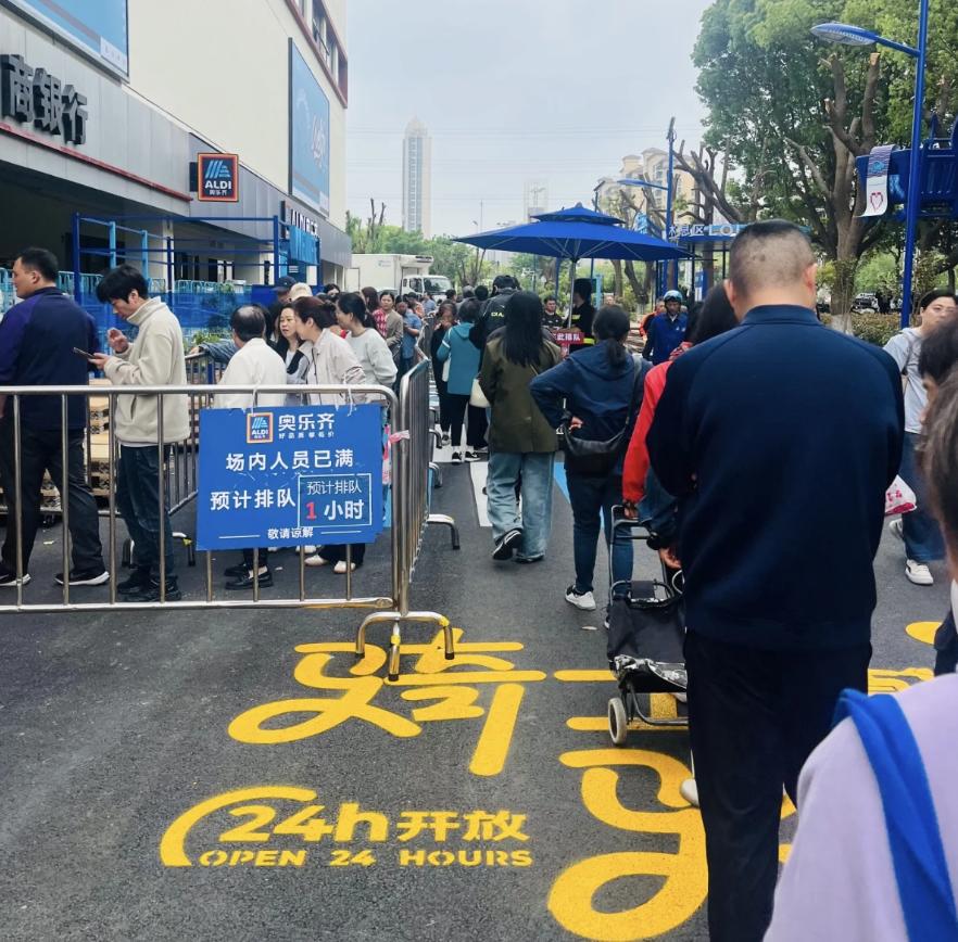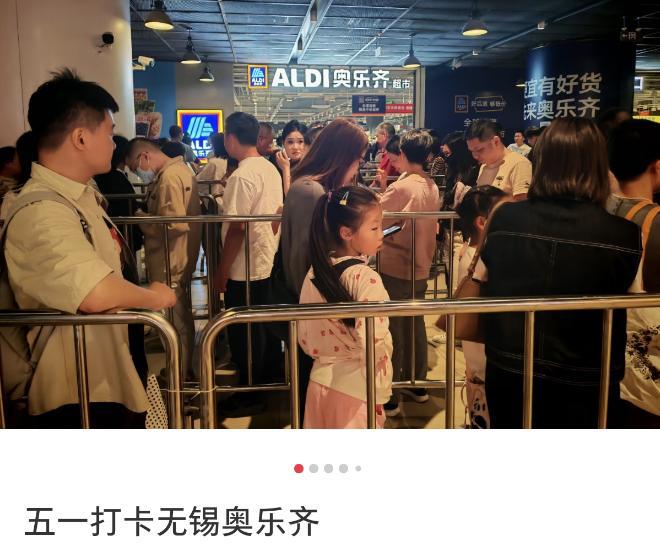 4 月 19 日奥乐齐在无锡、江苏开了两家新店,开业半个多月仍然人挤人,赶上五一放假去尝鲜、打卡的人纷纷排队抢购,清空了不少货架。