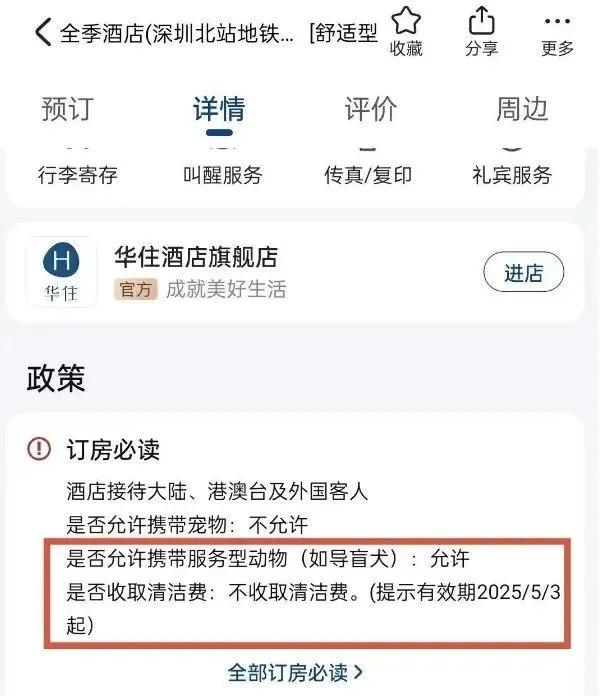 该客服还表示,华住会旗下所有酒店都支持相关法律法规,接待导盲犬。需要携带导盲犬入住的顾客,可以携带有效的导盲犬证件、疫苗及接种证明,就可以入住,华住会旗下的酒店都可以为有需要的客人提供完备的服务。