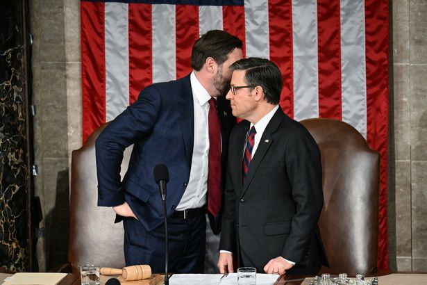 有人听到JD Vance和Mike Johnson用热麦克风聊天(图片来源:法新社/盖蒂图片社)