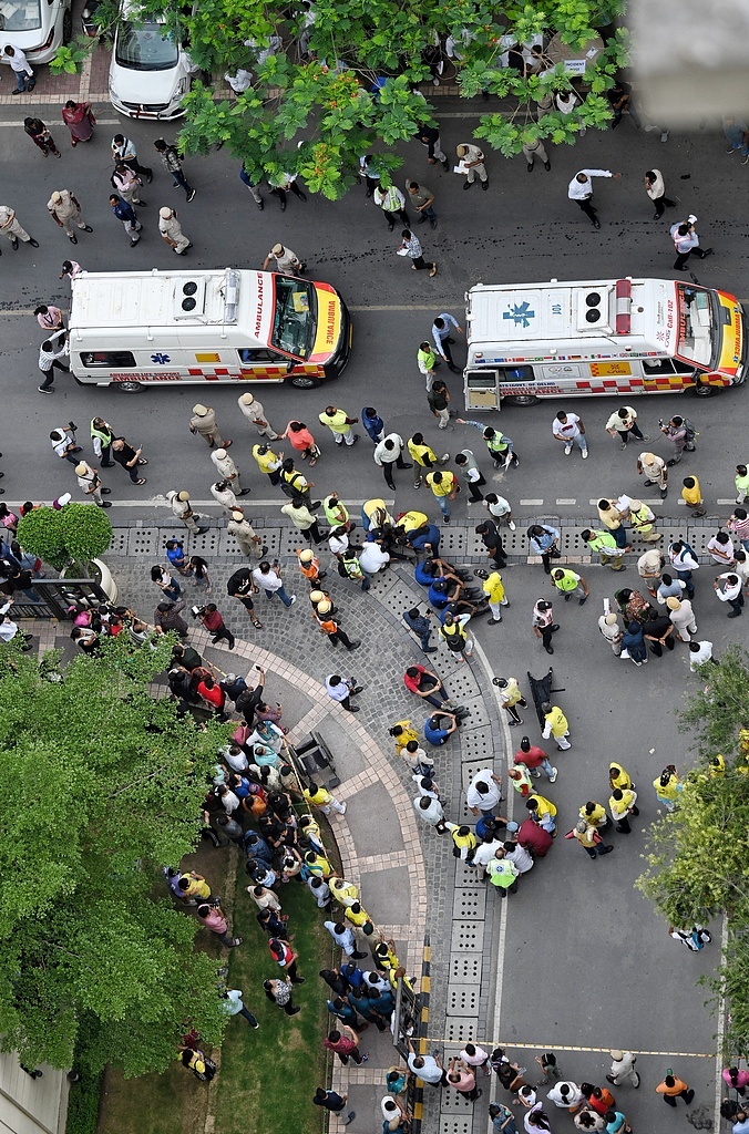 当地时间2025年5月7日,印度新德里,德里消防服务部门、德里警方、民防部门以及当地居民进行空袭演习模拟。