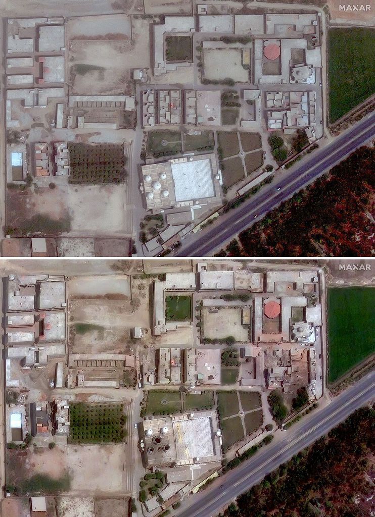 (卫星图像)当地时间2025年5月2日(上图)和2025年5月7日(下图)巴基斯坦旁遮普省巴哈瓦尔布尔附近的贾米亚清真寺院落,在经历印度空袭前后的景象。2025年5月7日,印度与巴基斯坦在争议边界附近展开激烈炮火交火,因新德里对其宿敌发起致命导弹攻击,这是20年来两国拥有核武器后最严重的暴力冲突。