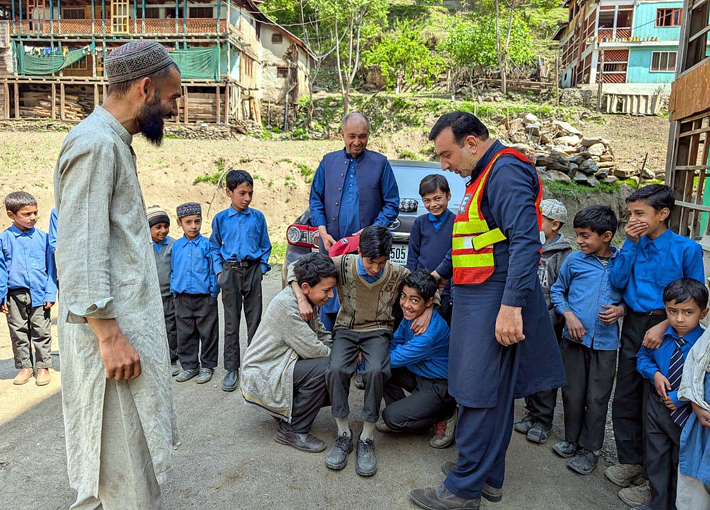 当地时间2025年5月6日,巴控克什米尔地区,民防人员在克什米尔尼勒姆山谷附近培训当地社区居民,帮助他们在大规模空袭或国家紧急情况下充分利用有限的政府资源。