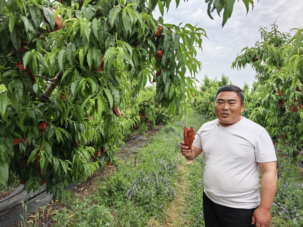 春夏之交的江苏省新沂市踢球山下,万亩桃林郁郁葱葱。再过一个月,新沂水蜜桃就要上市了。