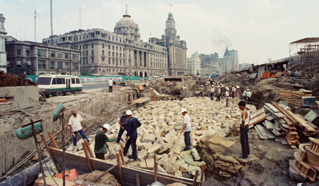 1992年,外滩综合改造工程施工现场