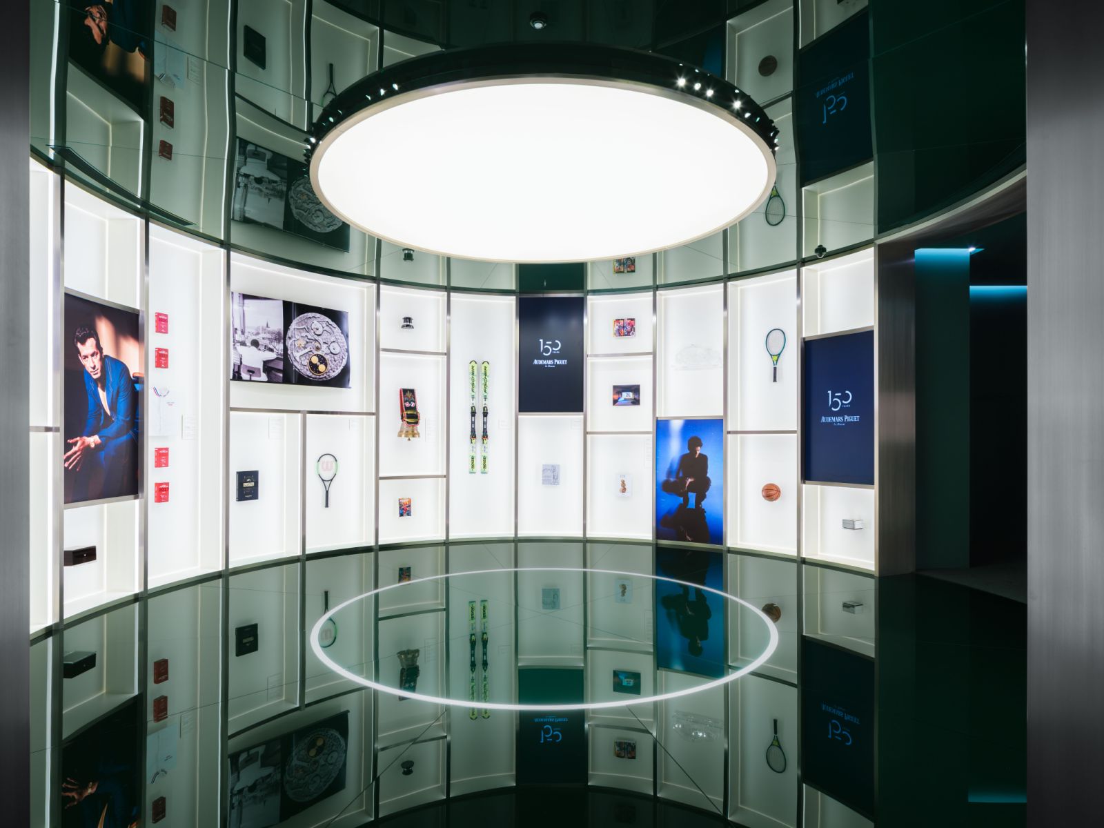 爱彼为本次展览策划了一系列主题展厅,一步步带来观众回顾爱彼自1875年创立至今的历史和传承。“时钟天地”展厅为展览起点,观众走近以步入式衣帽间为灵感设计的空间,身临放大版的制表师寸镜空间,感受具象化的时间概念。