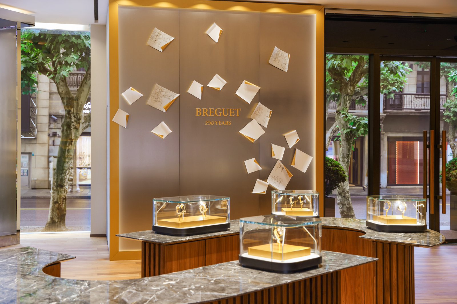 为庆祝品牌250周年,宝玑还翻新改造了上海朗廷精品店——这是品牌在中国规模最大的旗舰店。全新旗舰店在空间上更像是一个品牌文化与制表艺术的展览馆,内部开放式的三层空间为零售、陈列、展览和体验等不同功能给于了更加充分的机会。