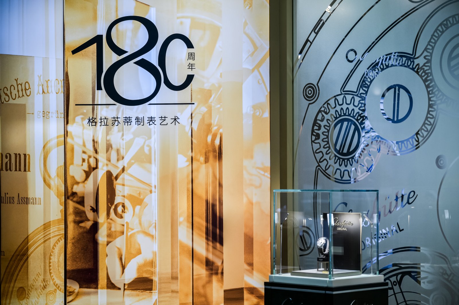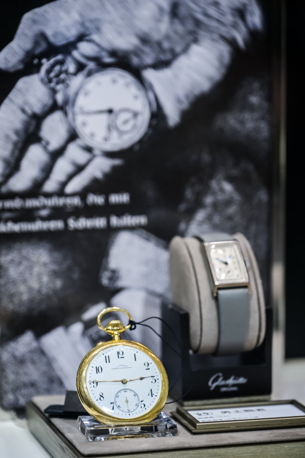值此周年之际,格拉苏蒂原创在上海南京西路品牌精品店举办了一场古董珍品巡展。此次展览特别呈现了一系列来自格拉苏蒂钟表博物馆的古董珍藏时计作品,有古董怀表、搭载天文台弹簧式擒纵机构的格拉苏蒂陀飞轮模型、航海天文钟、男士和女士腕表。