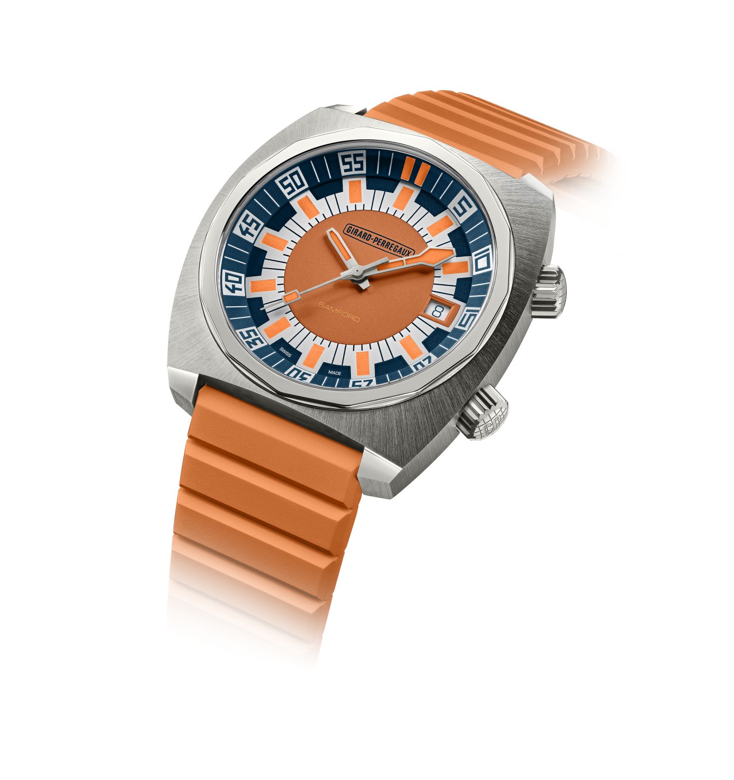 这款全新Deep Diver腕表是GP芝柏表对历史上的同名腕表的创新复刻和致敬。1969年,GP芝柏表首次推出Deep Diver腕表,将先锋设计与革命性Gyromatic高频机芯融为一体。