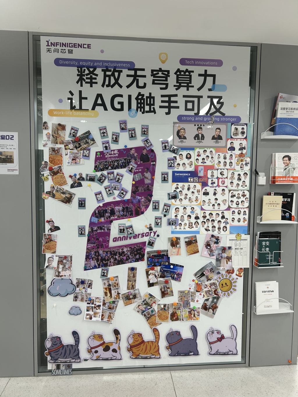 2025年5月,上海模速空间,无问芯穹成立2周年的一处照片墙。澎湃新闻记者 李佳蔚 图