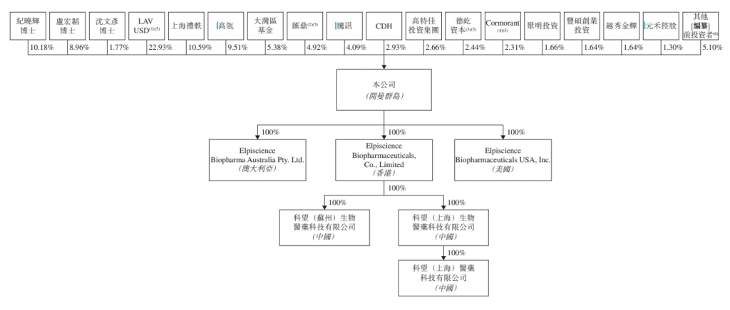 股权结构方面,IPO之前,LAVUSD持股22.93%,是科望医药的单一最大股东集团。LAV USD由LAV USD集团内的四个投资分部组成,由亚洲著名生命科学投资品牌礼来亚洲基金经营。此外,纪晓辉、卢宏韬持股比例分别为10.18%、8.96%。
