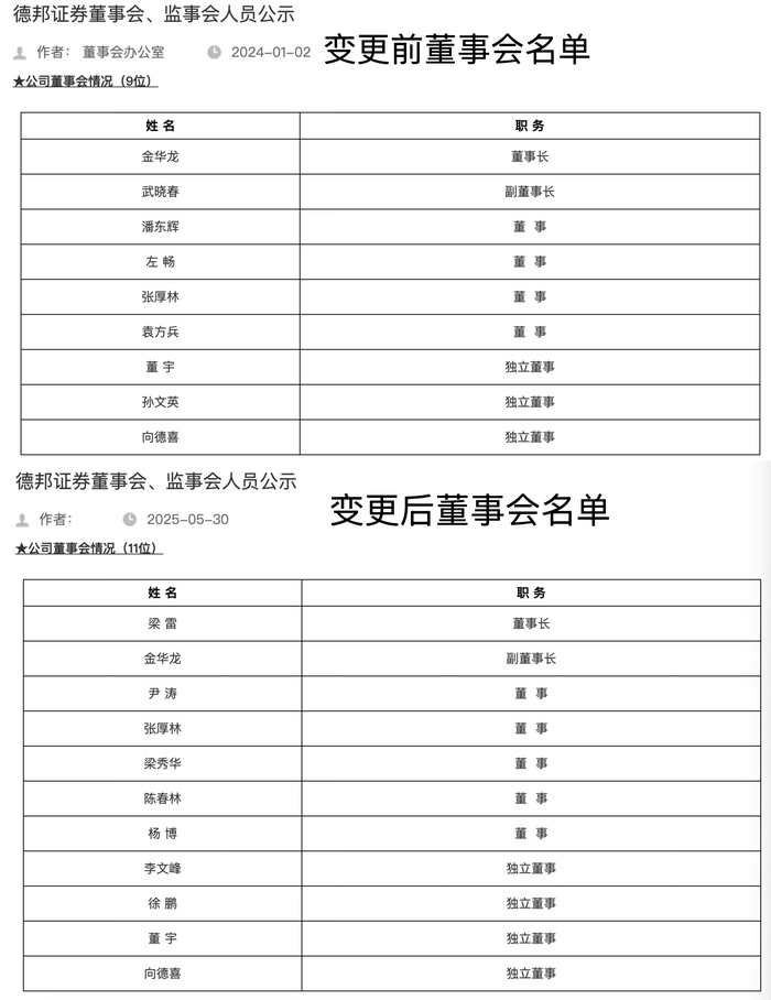 5月29日,德邦证券在济南召开2025年度第一次临时股东会,会议选举产生公司新一届董事会、监事会。新一届董事会共11人。