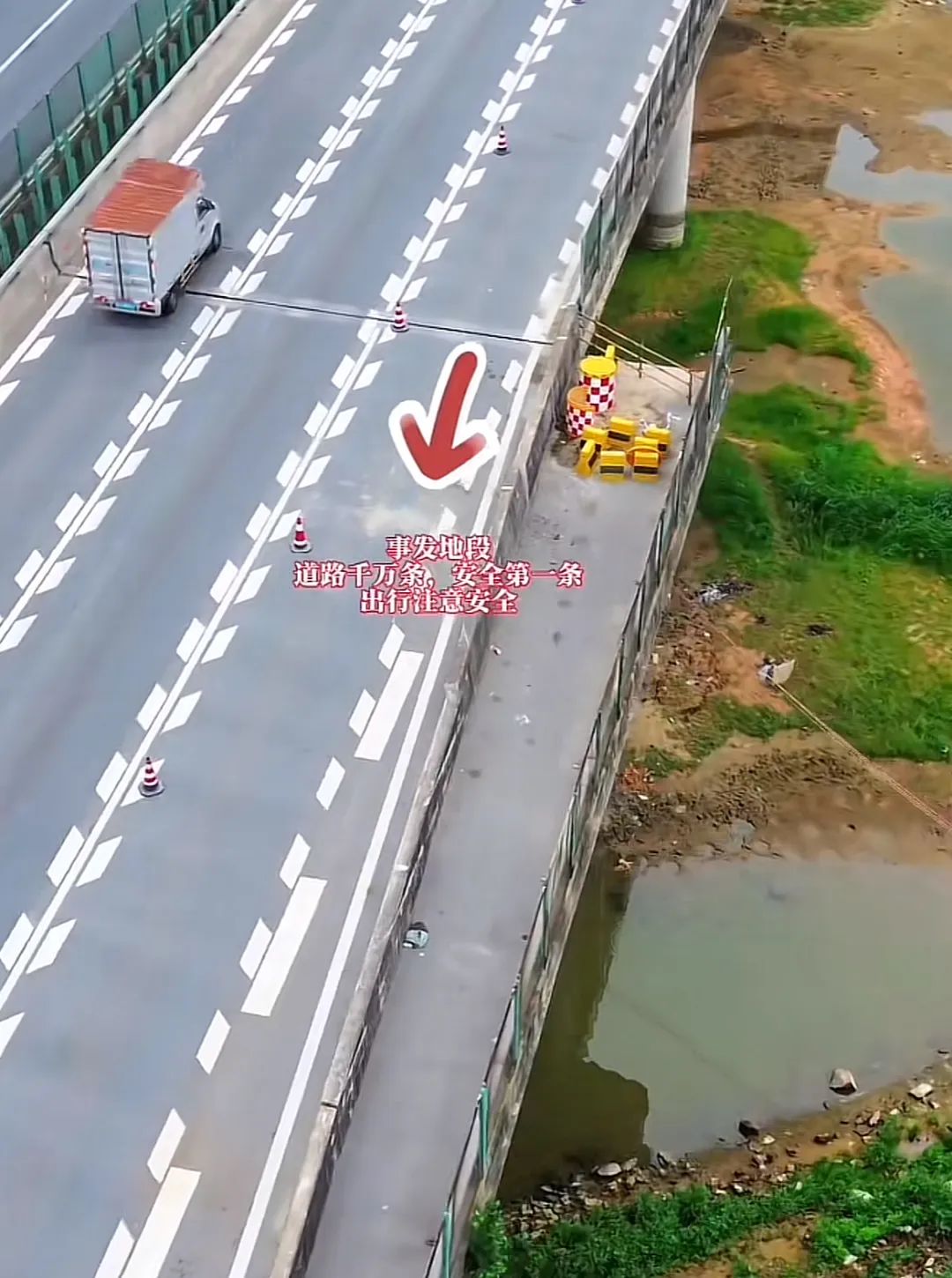 另据广东广播电视台,事发后事故现场右侧两条车道已被围蔽,断头路新增一排石墩并做好警示。