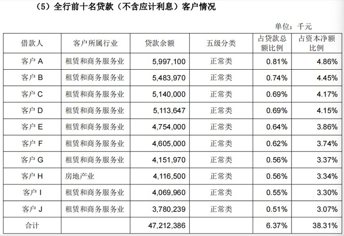 财报数据显示,2024年末成都银行租赁与商务服务业贷款余额2819亿元,相比2021年增长近2000亿。成都银行十大贷款客户中,九大客户属于租赁与商务服务业。