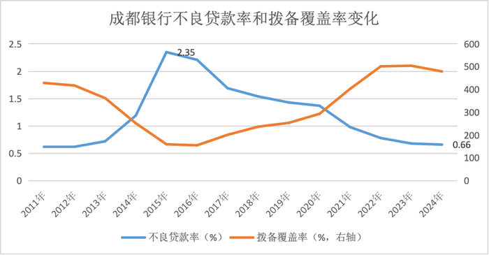 年报数据显示,2024年成都银行租赁与商务服务业不良贷款率仅0.11%,其他三类行业也低于0.6%。在庞大的政金资产支撑下,该行2024年不良贷款率仅0.66%,是不良率最低的上市银行。